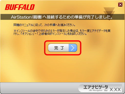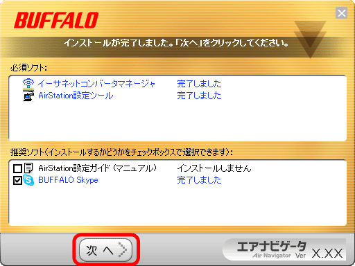 「インストールが完了しました」と表示されたら、[次へ]をクリックします。
