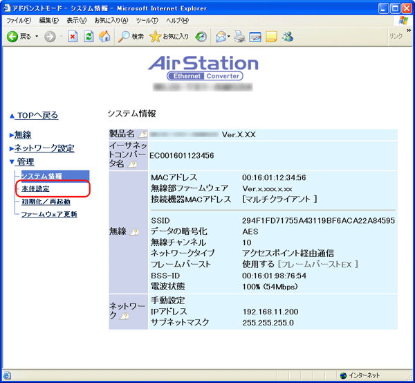 「WEB設定画面(イーサネットコンバータ)」に戻る