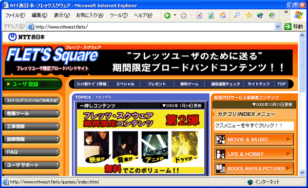フレッツ・スクウェアの場合、「www.flets」にアクセスするため、