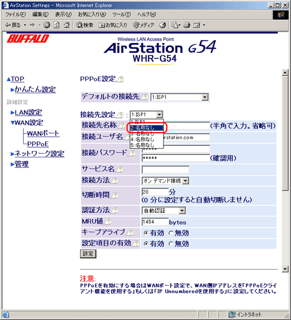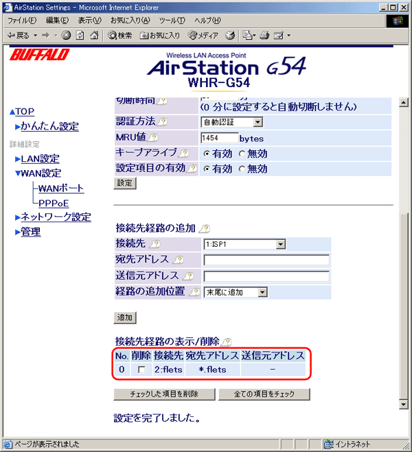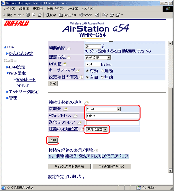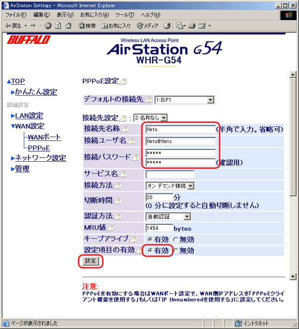 「.flets」にアクセスする際は、「接続先設定」で作成した「2:flets」を利用する