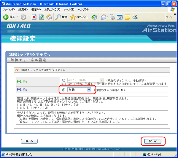 802.11aの無線機能の設定を変更する(WHR-AMG54シリーズをお使いの場合)