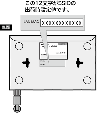 AirStation底面のシールにESSID(SSID)の出荷時設定値が記載されています。