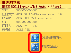 AOSS設定画面 または WPS設定画面を表示します。