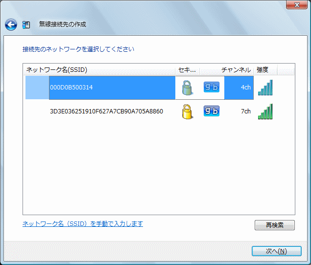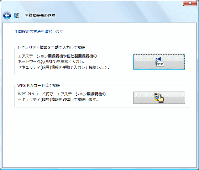 [セキュリティ情報を手動で入力して接続]をクリックします。