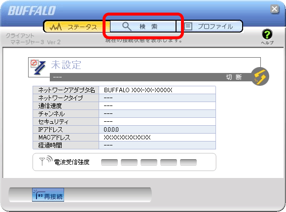 [スタート]-[(すべての)プログラム]-[BUFFALO]-[エアステーションユーティリティ]-[クライアントマネージャ3]を選択します。 -
