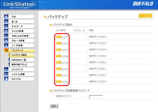 ・バックアップ先のLink/TeraStationに検索バックアップ公開用パスワードを設定していない。