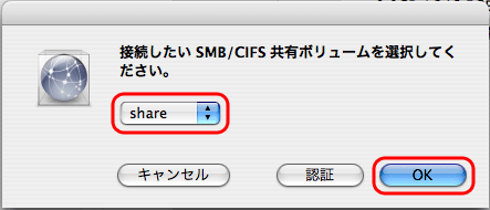 マウントしたい共有フォルダ名を選択し、[OK]をクリックします。 |