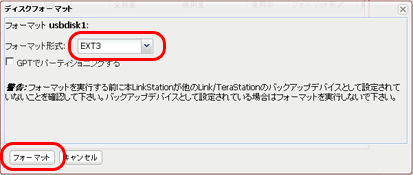 LinkStationの設定画面ではフォーマットできません。読取専用です。 |