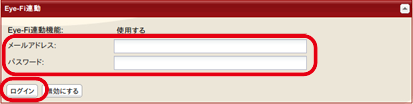 2.Eye-Fiカードの初期設定時に登録した、メールアドレスとパスワードを