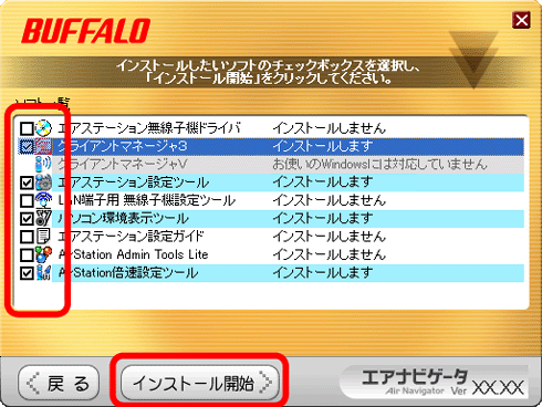 無線接続ソフト「クライアントマネージャV」「クライアントマネージャ3」や、設定画面の表示ソフト「エアステーション設定ツール」などは、以下の手順でインストールできます。