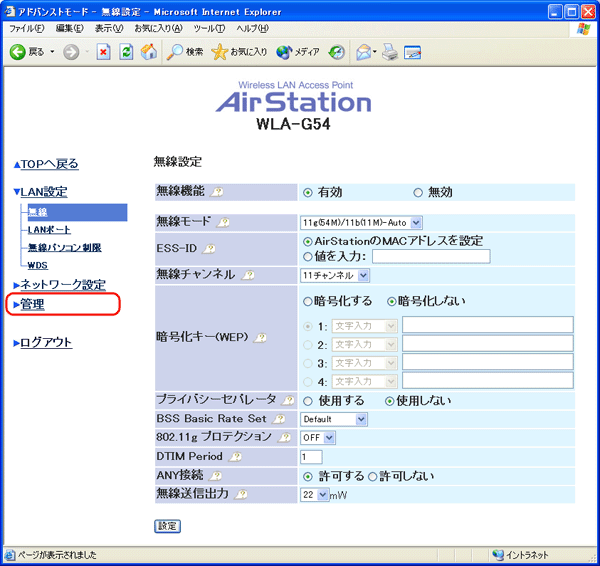 AirStationの設定画面のパスワードを設定します。パスワードを設定すると、AirStationの管理者だけが設定内容を変更できるようになります。