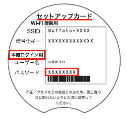 A:セットアップカードに「本機ログイン用」の項目がある場合