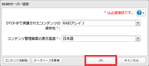 以上でDLNAサーバー機能を有効にする手順は完了です。