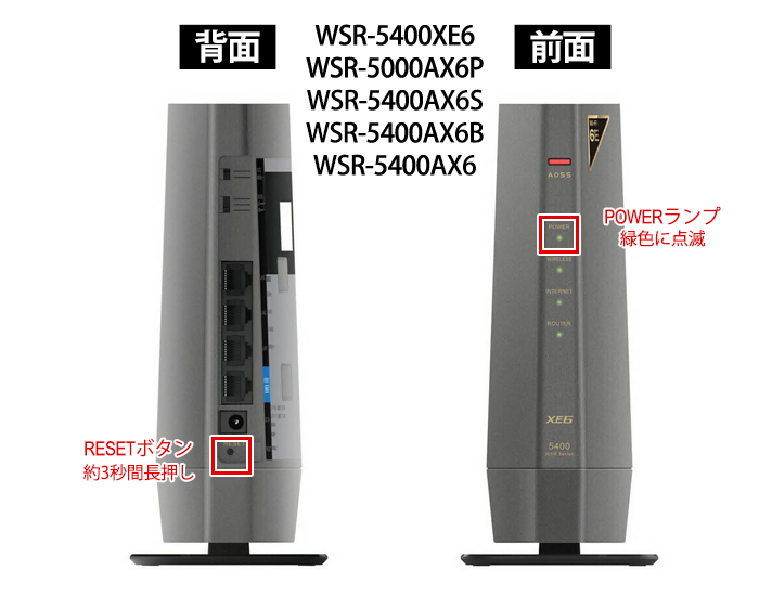 初期化ボタンより初期化を行う方法(WSR6500BE6P/3600BE4P/6000AX8P/5400AX6S/3200AX4S/3000AX4P/1800AX4P/2533DHP3/1166DHP4 ほか)