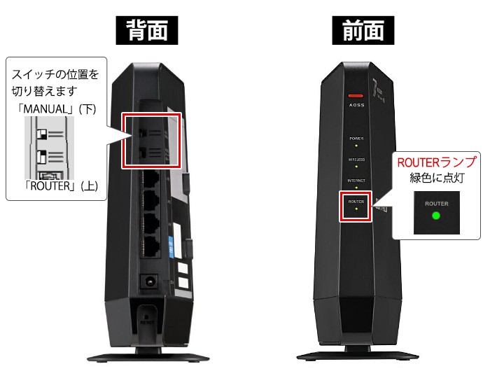 AUTO/MANUALスイッチが「AUTO」のときは、ルーター機能のオン/オフはモードスイッチに関係なく自動で設定されます。