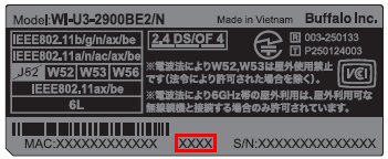 Wi-Fiアダプターのコントロールコードについては、ご利用の商品の下図、赤枠内の英数字3桁目を確認してください。