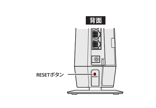 4. 背面のRESETボタンを、先を伸ばしたクリップなどで約3秒間押して、初期化します。