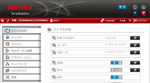 1. TeraStationの設定画面を表示します。