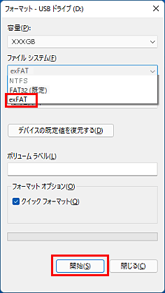 フラッシュメモリー(USBメモリー、メモリーカード※1)のフォーマット方法