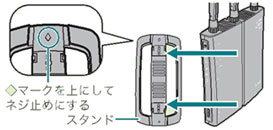 スタンドの前後を確認し、カチッと音がするまではめて、取り付けます。