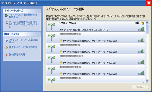 セットアップカードに記載のAOSS2の接続先(!AOSS-xxxx)を選択し、[接続]を選択します。