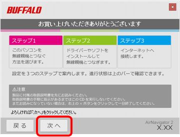 6)エアナビゲータが起動します。次の手順へすすみます。