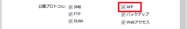8. 「公開プロトコル」の「AFP」にチェックマークをつけ、[OK]をクリックします。