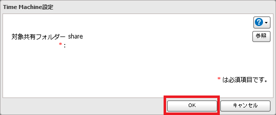 6. Time Machine機能でバックアップ先にする共有フォルダーをクリックします。