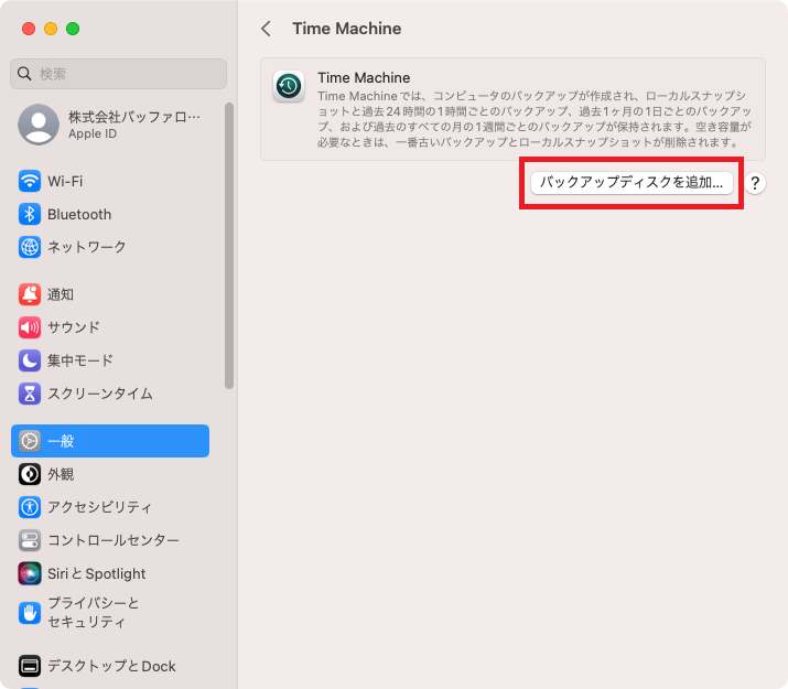 次の手順で、Time Machine機能を使用してMac内のデータをLinkStationにバックアップします。