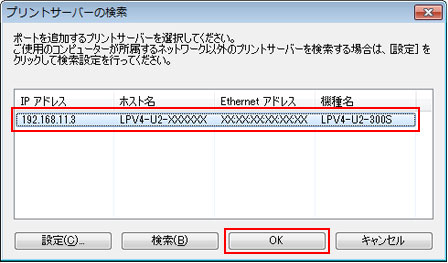 5.表示されたプリントサーバーを選択し、[OK]をクリックします。