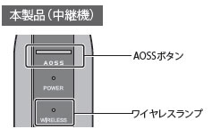 6. 中継機のAOSSボタンを、WIRELESSランプが2回ずつ緑色に点滅するまで(約1秒間)押し続けます。