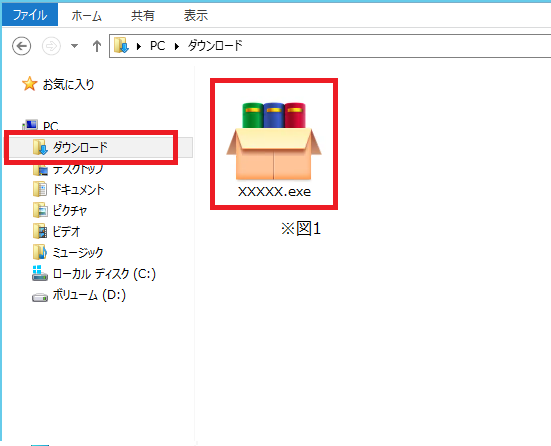 1. ダウンロードフォルダー(※)を開き、ダウンロードしたファイル(※図1)をダブルクリックします。