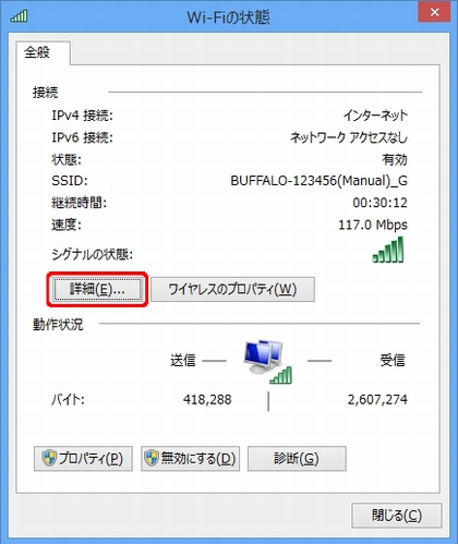 5. ネットワーク接続の詳細が表示されます。