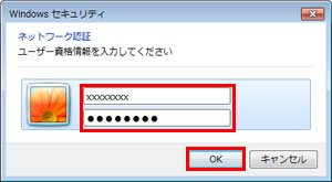 16.ネットワーク認証画面が表示されたら、ユーザー名とパスワードを入力し、[OK]をクリックします。