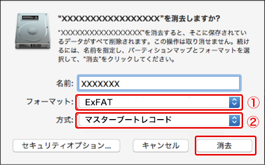 Mac OS拡張形式でフォーマットする手順を説明します。