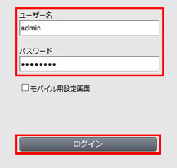 8. セットアップカードに記載されているユーザー名とパスワードを入力して、[ログイン]をクリックします。