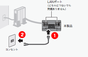 4.商品付属のACコードを、WLAE-AG300Nとコンセントにつなぎます。