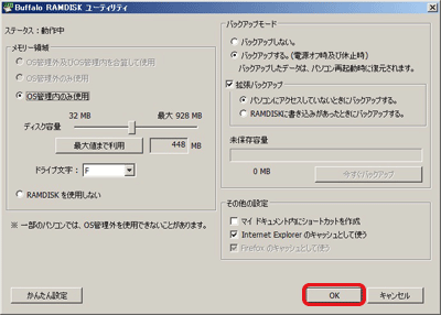 Windowsの動作に必要なメモリーやシステムメモリーの容量は、自動的に確保されます。メモリー容量の全てをRAMDISKに割り当てることはできません。