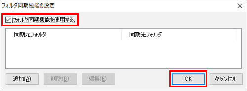 3. [フォルダー同期機能を使用する] にチェックをつけ、[追加] をクリックします。