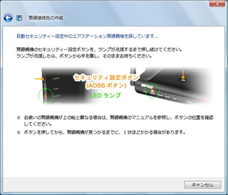 自動セキュリティ設定のボタン(WPS AOSS)をクリックします。