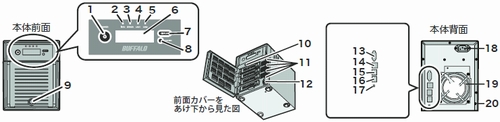 TeraStation本体各部の名称と機能について