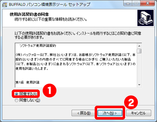 27. 「BUFFALO パソコン環境表示ツールセットアップウィザードの開始」と表示されたら、[次へ]をクリックします。