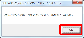 34. 「クライアントマネージャVのインストールが完了しました」と表示されたら、[OK]をクリックします。