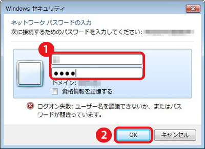 パスワードの入力を求められたら、[ユーザー名]と[パスワード]を入力して、[OK]をクリックします。