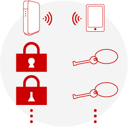 セキュリティーの設定が正しく行われていると、Wi-Fiルーターとの認証が確認できる機器以外はアクセスできないので、インターネットのタダ乗りや不正アクセスなどを防ぐことができます。